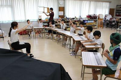 学校紹介、自己紹介から交流が始まり、子どもたちのお互いに積極的に関わろうとする姿勢がだんだん強くなっていくように感じました。音楽の授業では「グループ同士で合奏を発表し合えて、とても楽しかった」という感想がありました。仲間が数人増えると、学習活動の幅は広がります。