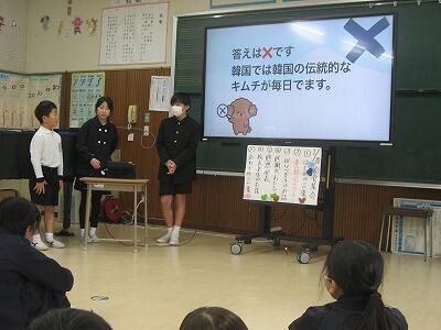 内容は「全国の人気献立1位から3位は?」などの給食クイズや、感謝のお手紙を渡した後、栄養教諭の先生のお話を聞きました。