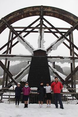 厳しい冷え込みで、大水車が凍りついて動きを止めていました。