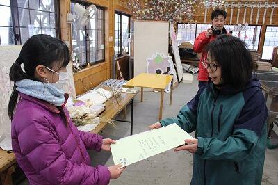 卒業証書用に一人2枚ずつの神代和紙をいただきました。保存会の仲田さんは、毎年メッセージを書いた袋に入れて、渡してくれます。