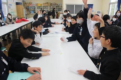 1年間交流を継続してきて、授業では、2校の児童が関わり合う様子がよく見られました。「人数が増えると体育が楽しくなる」「友達同士で話し合う事ができて楽しかった」「北小の友達がどんな人か分かってきた」などの感想が聞かれました。